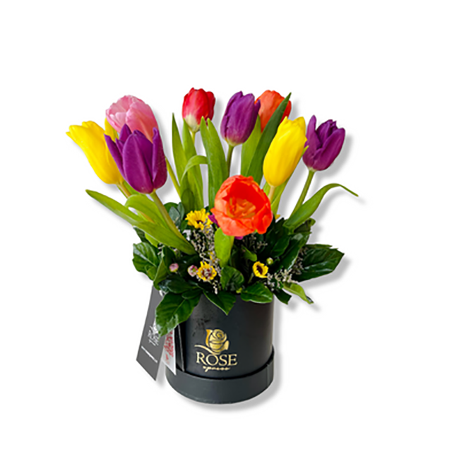 Caja 3 Tulipanes + Corazón Kisses + Globo 9