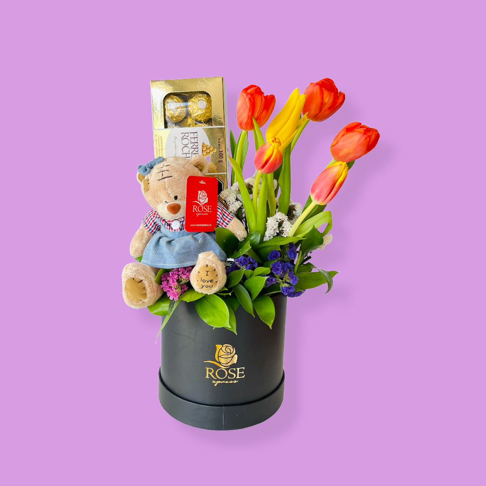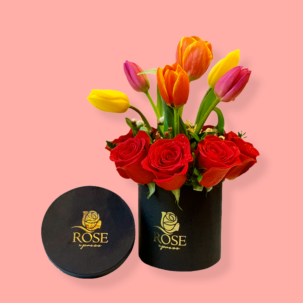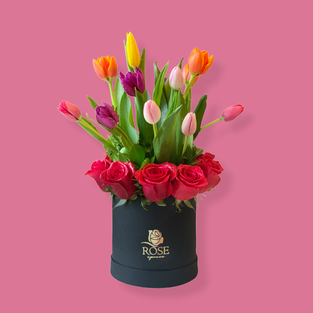 Explosión de 10 Tulipanes y 10 Rosas