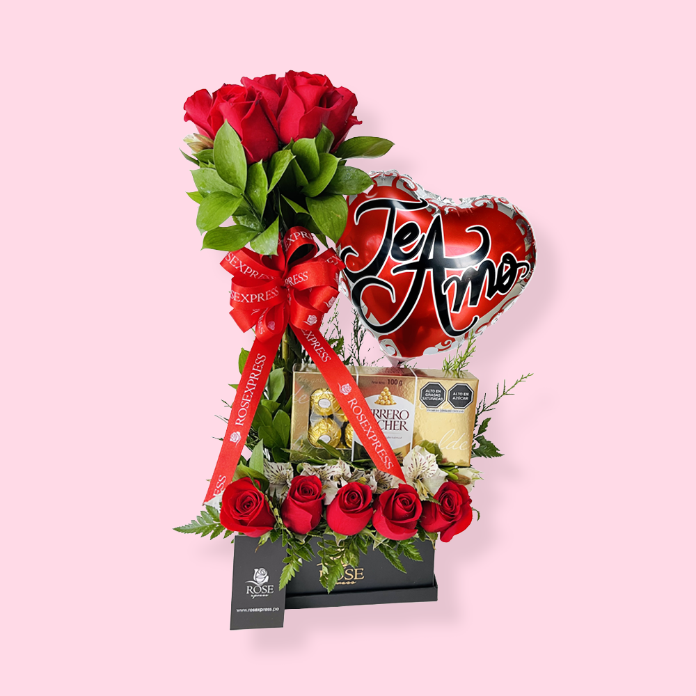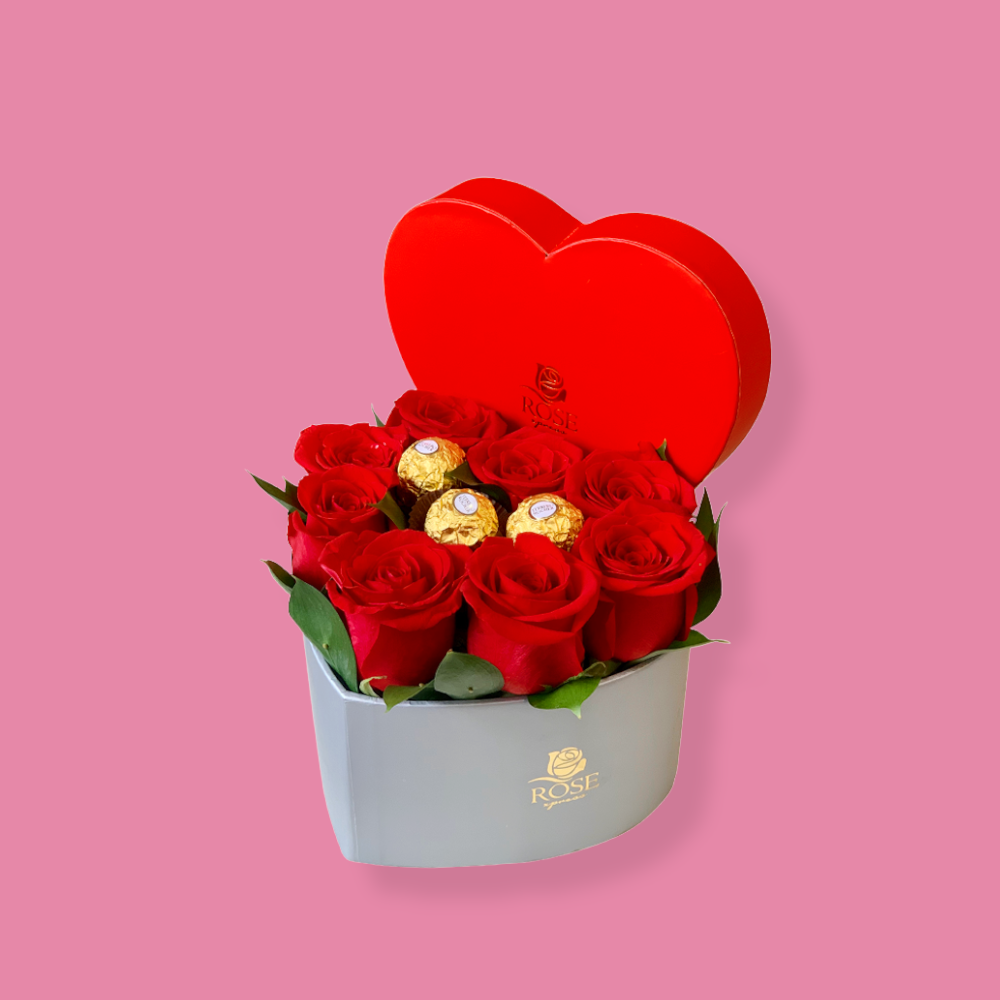 Caja Rec. 18 - 12 Rosas 6 Bombones